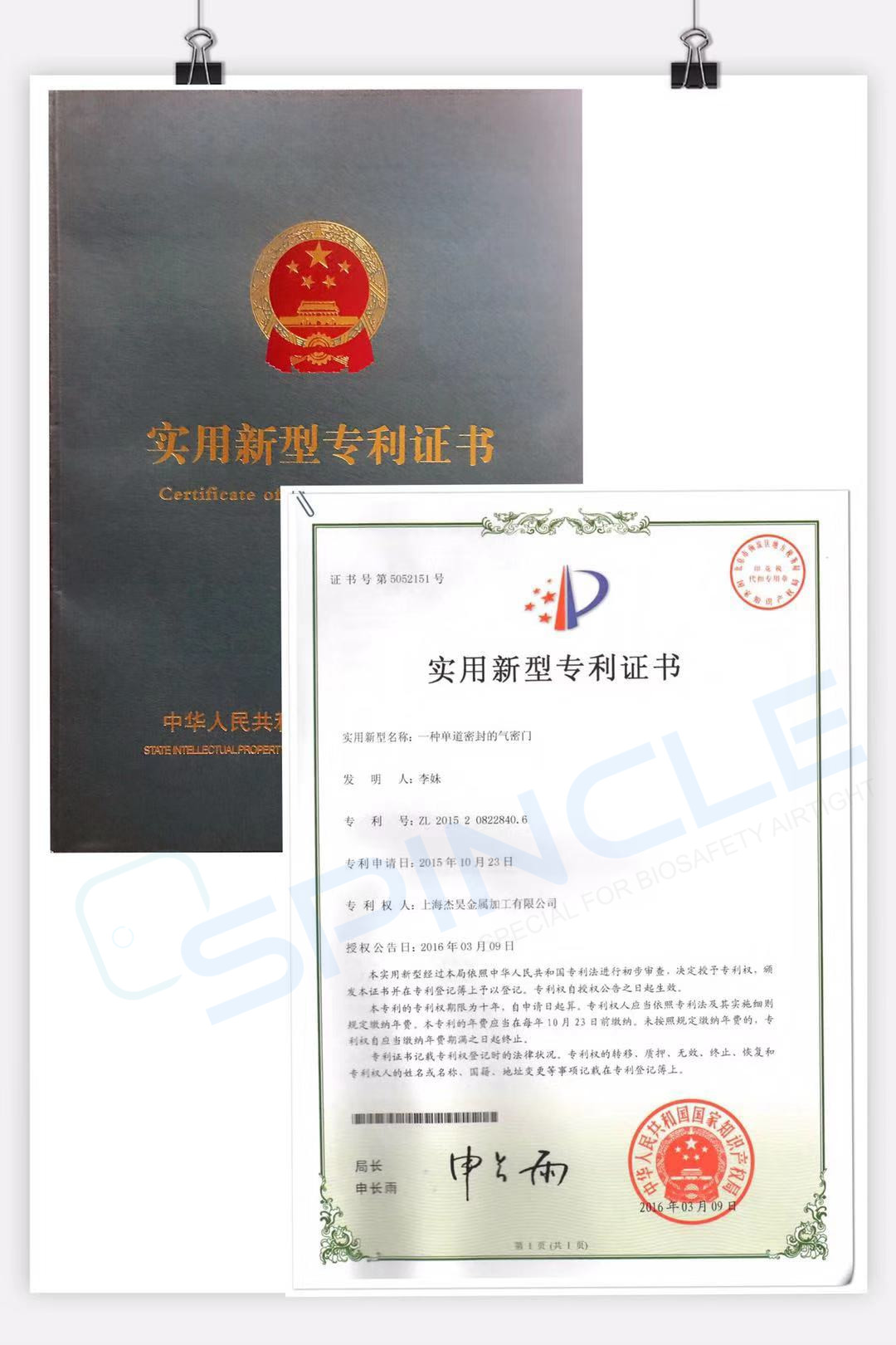 经过一年的使用,杰昊研发部细化了生物安全气密门的更多细节,故再次申请气密门的专利,又推进了国家生物安全气密门的进一步发展。
